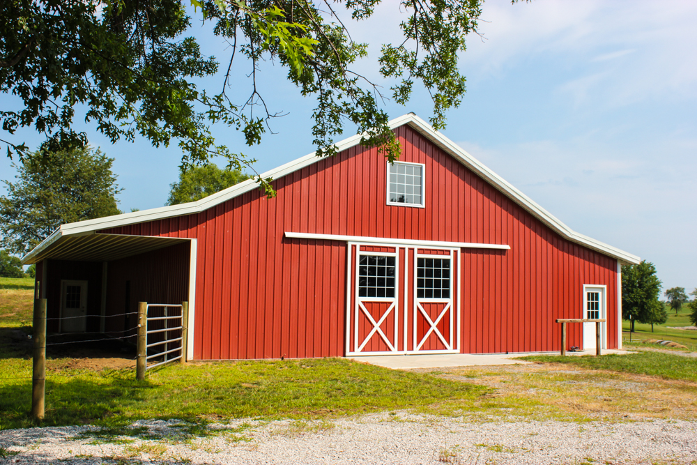 This is an older Model 4000 Perka Building we stumbled onto recently; it has bolt on frame unsupported overhangs with custom built tack room and office under parts of the overhang on both sides. The customer has also built a “loft” storage area that is supported by posts and takes advantage of the high clearspan with no bottom chord to obstruct the headroom.
